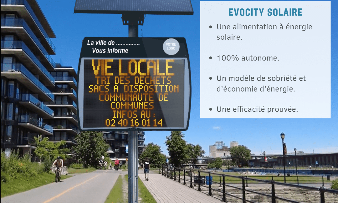 Conçu pour répondre aux besoins en matière d’affichage et d’information sans peser sur la facture énergétique, EVOCITY devient 100% autonome grâce à l’utilisation de panneaux solaires. ☀️