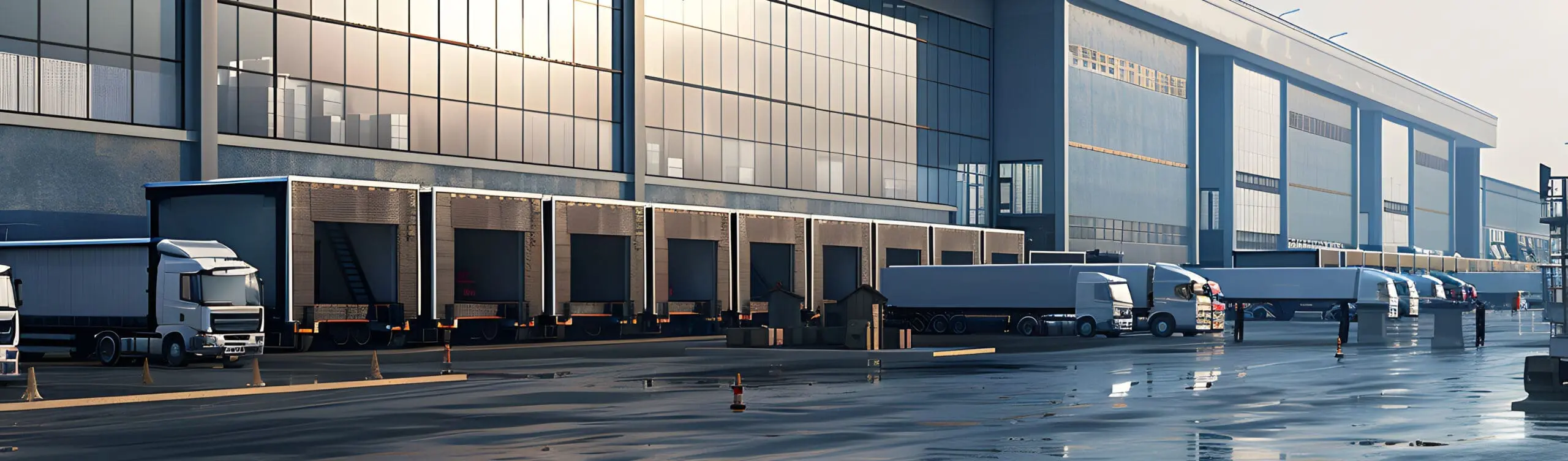 Dans les grandes zones de livraison ou les parkings pour camions, différents types de véhicules et piétons se croisent.